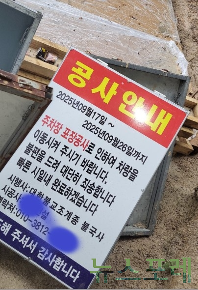이 가운데 일주문 옆 현장은 '공사안내'를 통해 지난 9월 26일까지로 게시한 공사 기한이 10월 들어서도 지켜지지 못하고, 불교미술관 인근 경사로는 미끄럼방지 줄긋기 시공이 한눈에 보기에도 허술해 빈축을 사고 있다.