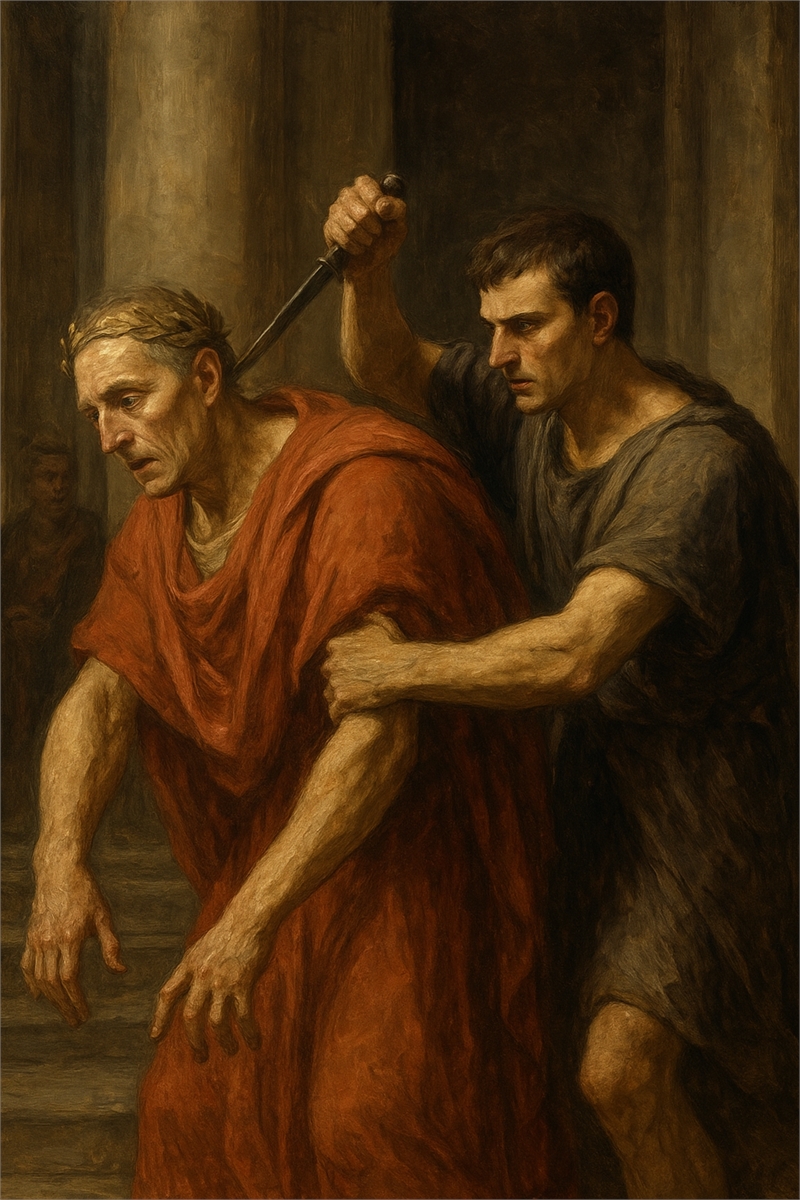 카이사르의 등에 칼을 꽂는 양아들 부르투스. (사진= 챗GPT)